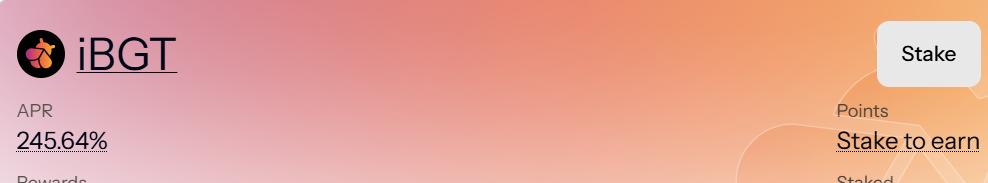 Staking iBGT on Infrared earns rewards generated by the underlying BGT, distributed in HONEY. Additionally, users can add iBGT to liquidity pools on decentralized exchanges like Kodiak or use it for lending on platforms such as BeraBorrow, Gummi, and Dolomite.