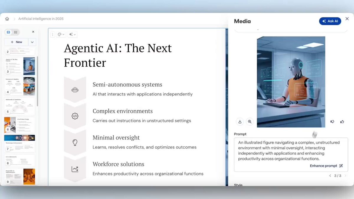 Your new go-to AI for presentations, websites, docs, and social media posts.