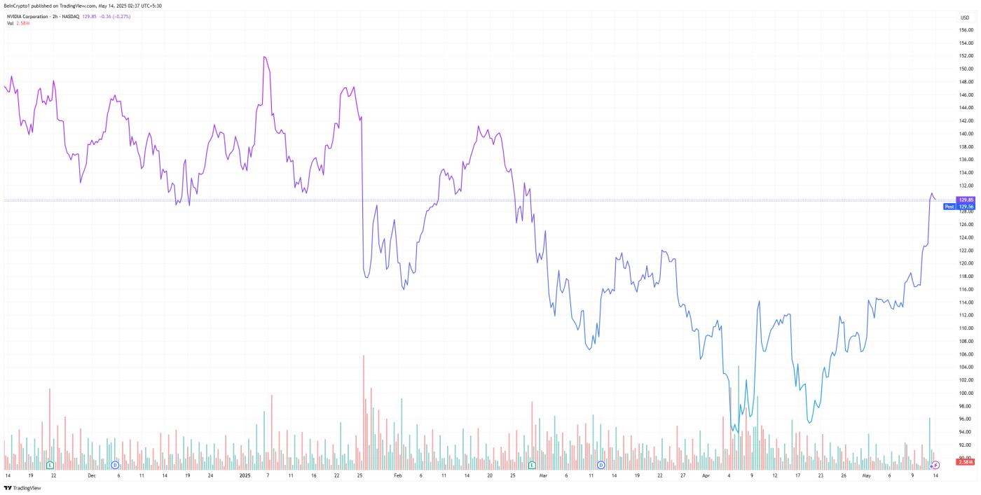 “Risk-on assets have generally underperformed in the early months of 2025, despite signs of a recent recovery. Furthermore, growing competition, particularly in the GPU and AI sectors, poses a threat to NVIDIA’s market leadership and raises the possibility of reduced market share. Ongoing US tariffs also present a significant risk, with little clarity on their future direction. Taken together, these elements likely prompted some investors to reduce their exposure to NVIDIA, locking in profits after a remarkable rally that saw the stock price rise about x9 between early 2023 and the start of 2025,” Matteo Greco, Senior Associate at FINEQIA, told BeInCrypto.