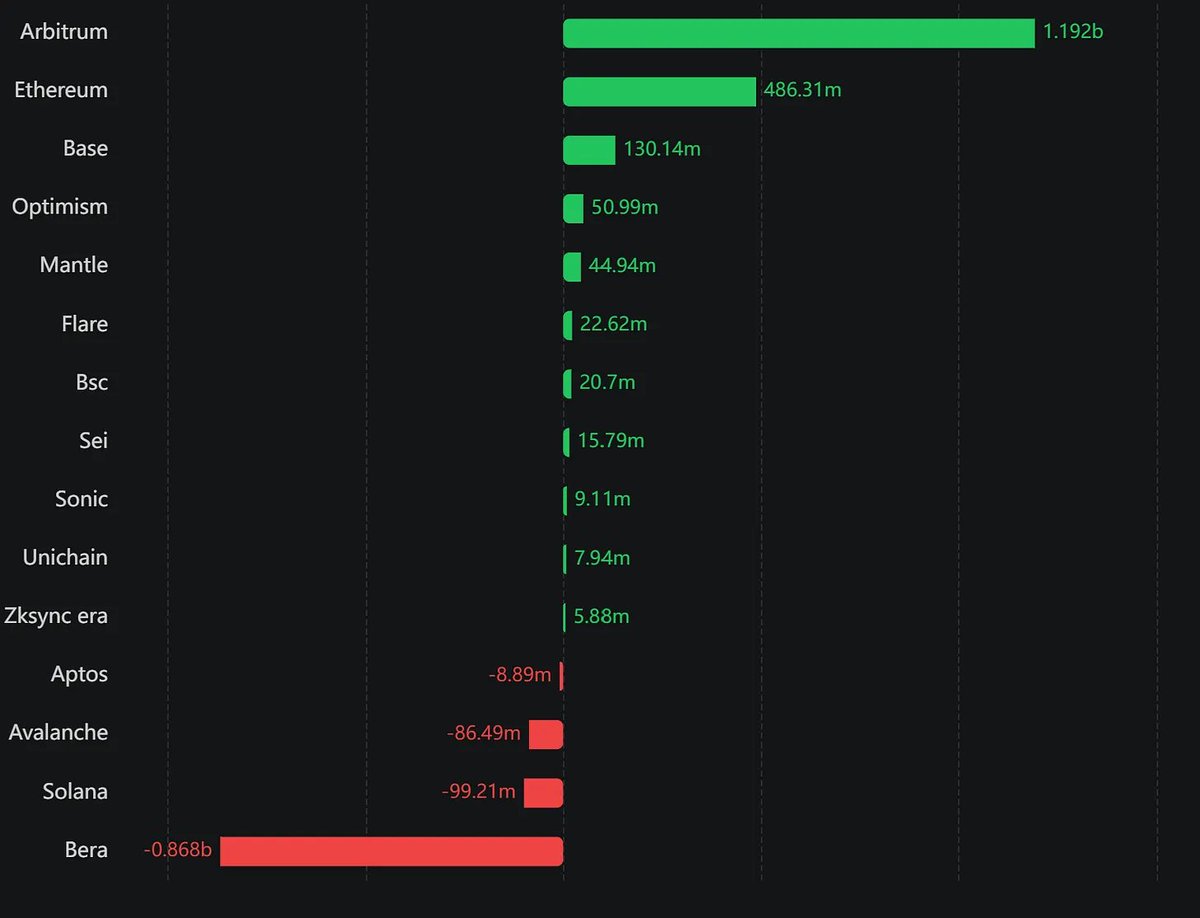 📍 @arbitrum / @HyperliquidX +1.19 billion (previous +270 million) for four consecutive weeks🔥🔥🔥🔥
