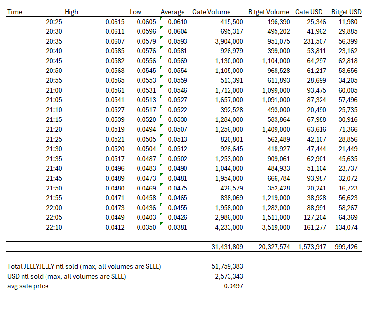 11/n - If you go by a 50% wash volume hit rate in crypto, that implies ~ 25M of $JELLYJELLY spot (1.2M USD) sold into the market caused a 50% dump in prices
