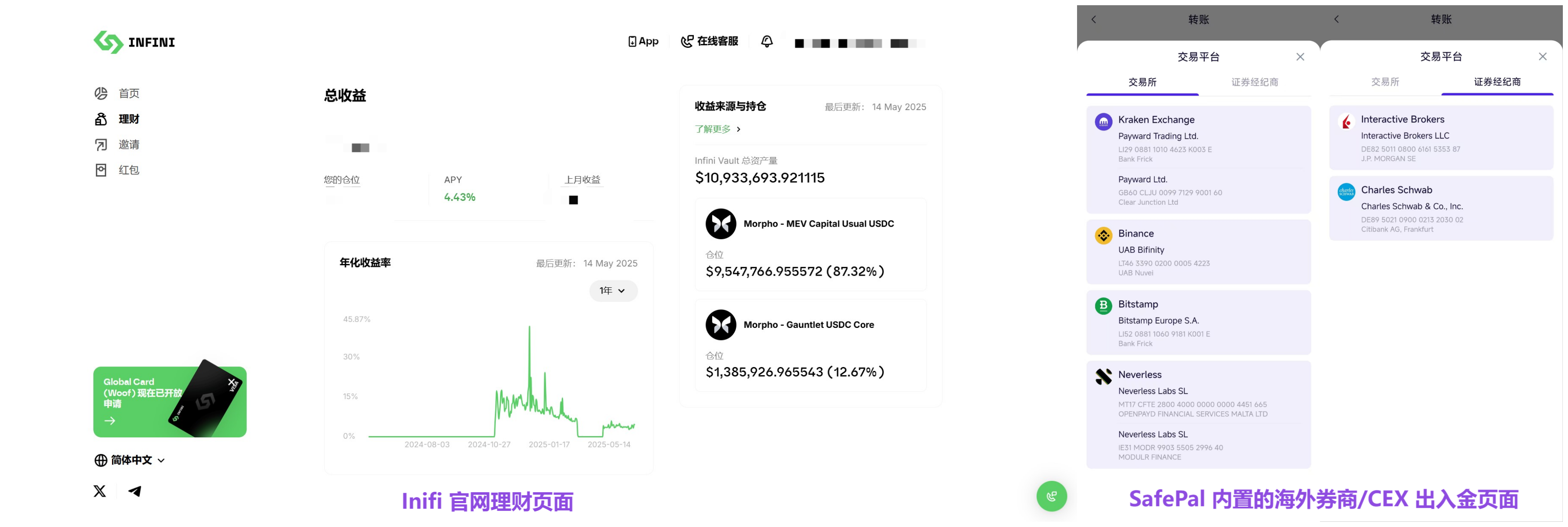 More importantly, this model opens up broader deposit and withdrawal channels, achieving a seamless connection between TradFi and Crypto worlds in a certain sense: taking SafePal & Fiat24's bank account service as an example, users can not only complete free deposits and withdrawals with overseas brokers (such as Interactive Brokers, Charles Schwab) and CEX, but also transfer funds back to Alipay/WeChat or domestic banks through channels like Wise (Euro SEPA transfer), realizing an asset flow closed loop between on-chain and off-chain.