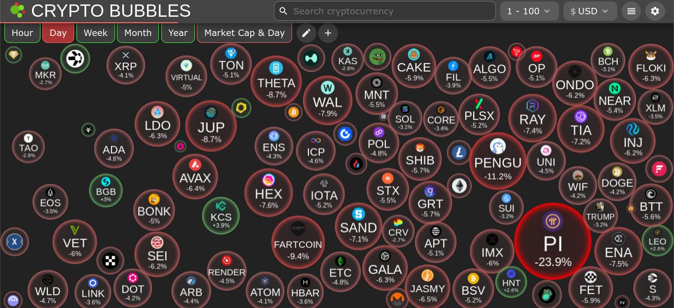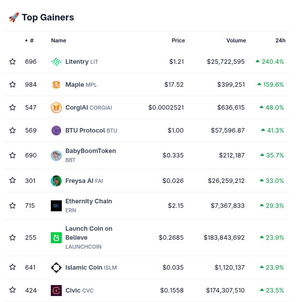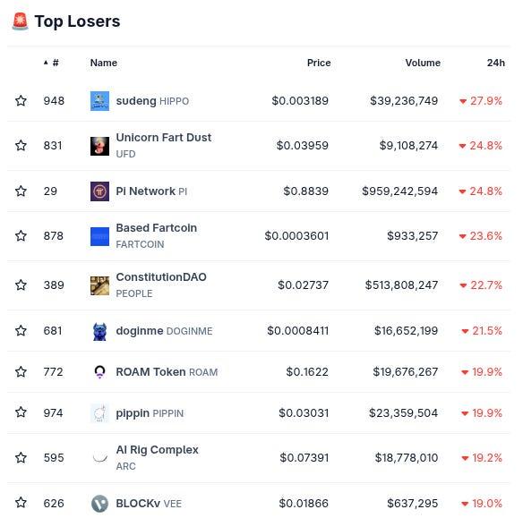 Protocols are also quite red today. Only top 25 protocols green on the daily are Spark (#7), Ethena (#11), and Pendle (#12).