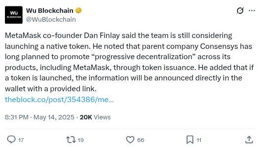 -Will we finally get the long-anticipated MetaMask airdrop? h/t @WuBlockchain: