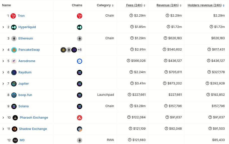 Here’s The Top Entities By 24 Hour Token-Holders’ Revenue (from @DefiLlama):