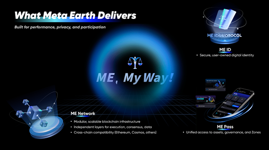 These features make ME Network an ideal platform supporting large-scale Web3 applications, laying the technical foundation for Meta Earth's decentralized, self-driven global UBI vision.