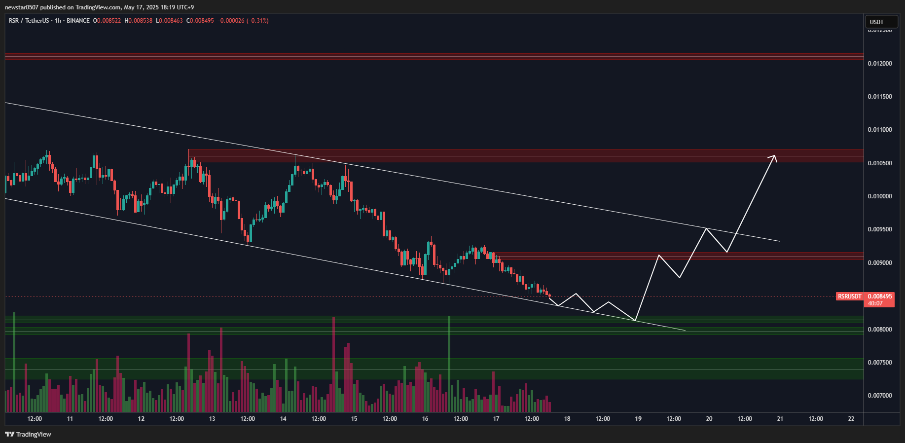 A pullback has already occurred, and RSR Coin is now hovering near $0.00815, where a strong trendline intersects with a buying wall.