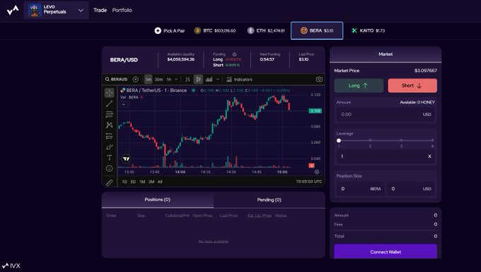 📉IVX📈 @ivx_fi is an OG in the Berachain ecosystem and has zero day options! Also @0xMughal is a legend and explains everything from his personal! You can currently trade $BTC, $ETH, $BERA, and $KAITO! Leverage!! Possible $IVX airdrop too 👀 Link -> http:/levo.ivx.fi