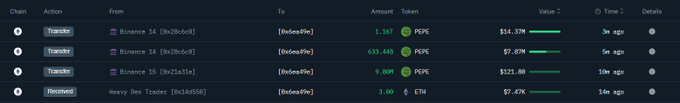This whale has further withdrawn 420B $PEPE worth $5.58M from #Binance. In total, the whale has withdrawn 2.21T $PEPE worth $29.31M. Address: 0x6ea49ef3b235475297f36b007a43e1fee8a41fe0 Data @nansen_ai