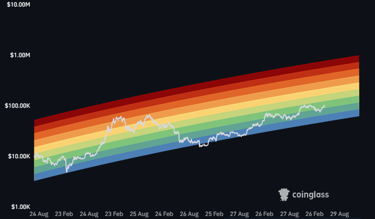 $BTC Has slowly been crawling back up into the green area on the Rainbow Chart 🌈 With lower highs each cycle, I think we could already be very happy if price were to visit the green-yellow region this time around. Especially seeing how mature and large the market has become.