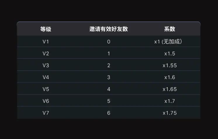 - By inviting 6 friends, user A's reward increases from 200 to 350 tokens, a 75% increase.