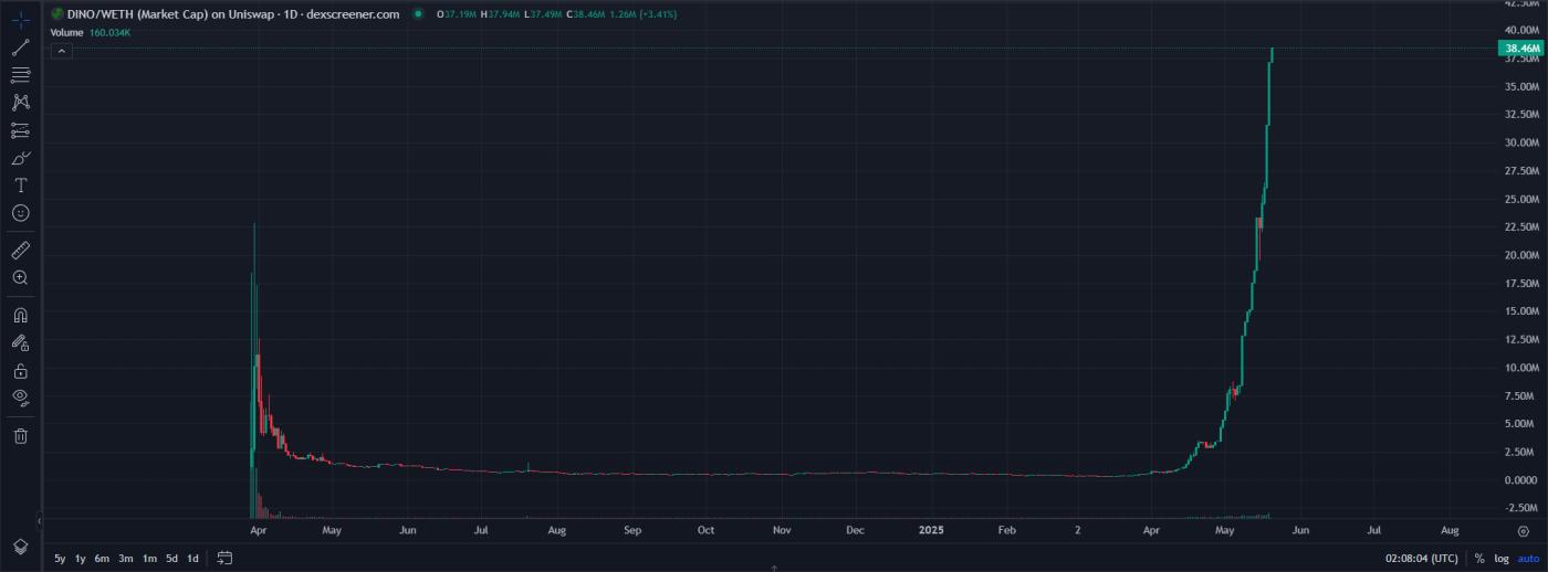 Recently, DINO on the Base chain has been at the top of the growth list, and on May 19th, it hit a new high, breaking through the market value of 40 million US dollars. However, the first half of this coin holding journey that started in April 24 is a realistic portrayal of most projects in the crypto.