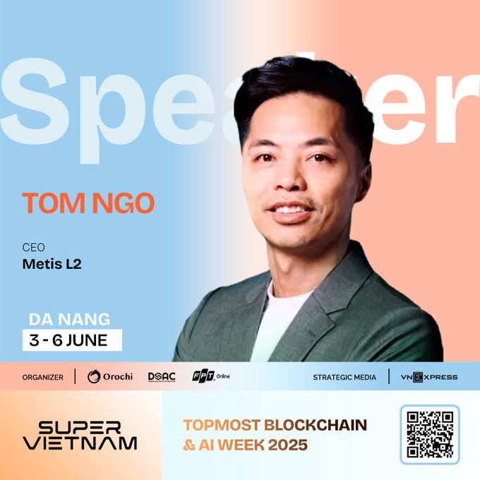 🔧 Scaling Ethereum with Practical Infrastructure We’re pleased to welcome Tom Ngo @tomngodefi, Executive Lead at @MetisL2, to #SuperVietnam2025. Tom leads the development of Metis, a Layer 2 solution focused on real-world scalability. With its dual-network architecture -