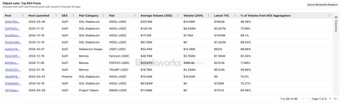 7/ Finally, looking at the top pools from SolFi and Phoenix, SolFi has four of the top pools which are all SOL-USDC. The market structure around larger assets like SOL is more accommodating to market makers, in contrast to tokens like illiquid memecoins.