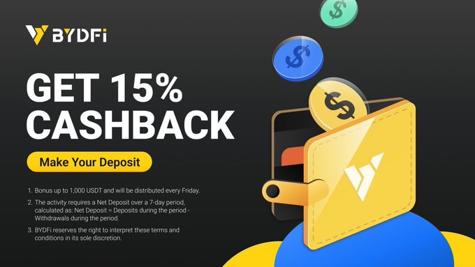 Get 15% Cashback up to $1000 when you sign up and deposit on BYDFI using our using our referral link below🔗⬇️⬇️
