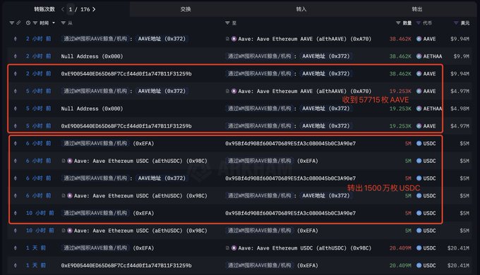 No wonder the AAVE price is so resilient: yesterday, the whale/institution sold 184.4 WBTC ($20.4M) through Wintermute OTC, and today bought $15 million worth of AAVE through Wintermute. They transferred $15 million USDC to Wintermute, and then received 57,715 AAVE from Wintermute, with a purchase price of $259.9 per token. They have been accumulating since March 2023