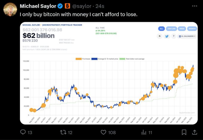 🚨 BREAKING: Michael Saylor just posted his famous Saylor tracker chart with an additional orange dot. You know what that means! He's buying more Bitcoin!