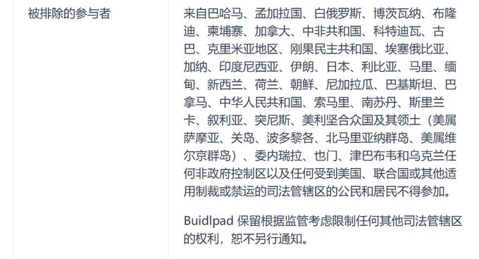 Sahara's IDO on buildpad will start on 6.10. However, KYC deadline is 6.8. Valuation is 600 million, with 100% token generation event (TGE) release. They have allocated 1.3% for IDO, raising a total of 8.5M in funds. Theoretically, it should be profitable, but currently, KYC restrictions are quite strict. The following countries are not eligible. Those with relatives or chief friends in distant lands can help out. 😂