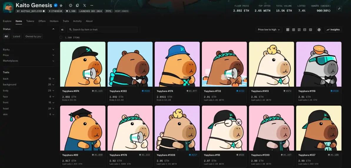 As the proposer and track pioneer of the InfoFi concept, Kaito needs no further introduction. Its native token's total market value currently reaches $455 million, ranking 171st. On May 29th, Kaito launched its official Non-Fungible Token series Kaito Genesis, with a floor price of 2.89 ETH at the time of writing.