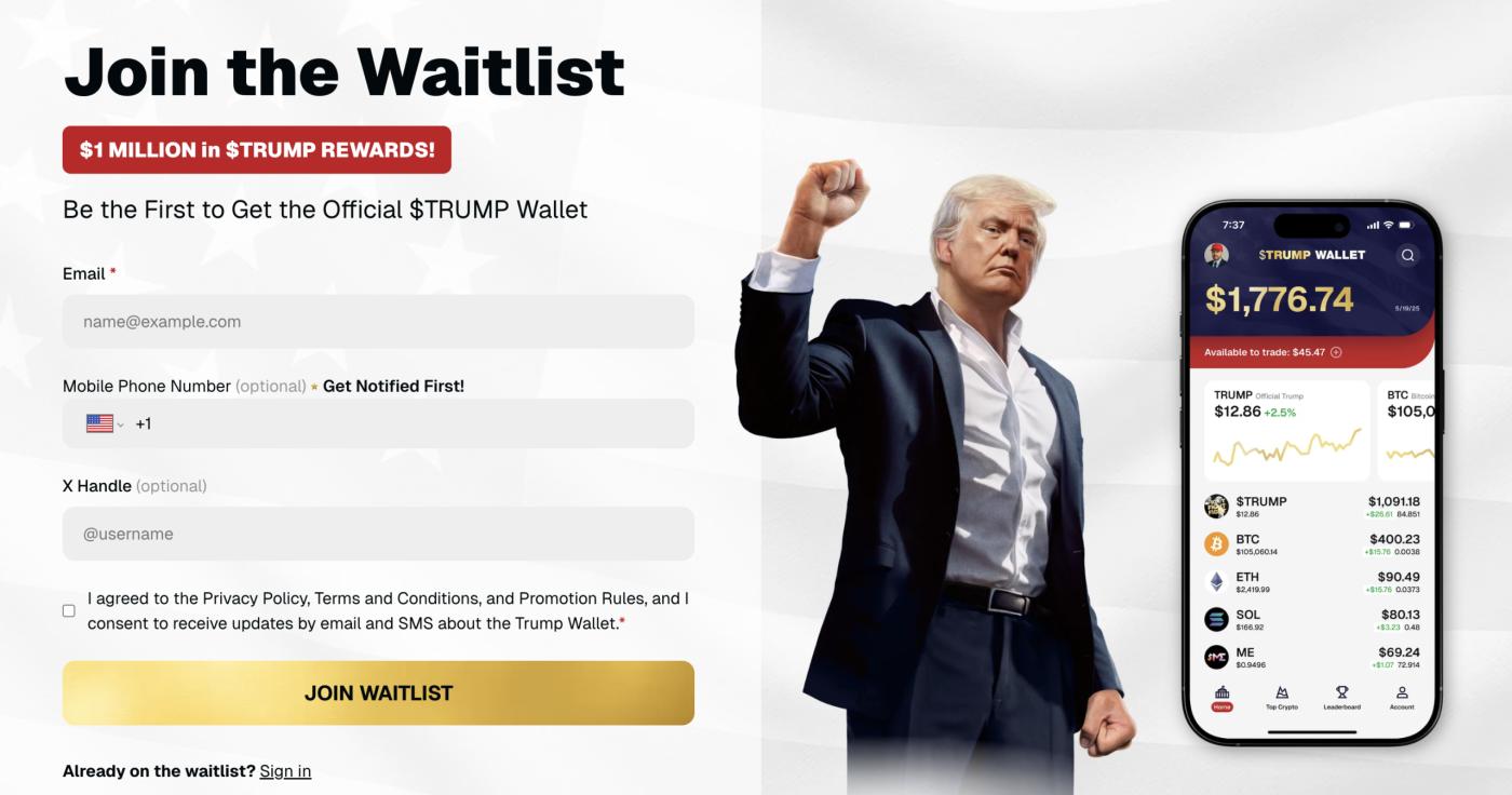 Registration opened at TrumpWallet.com, and high-value rewards were promoted to attract users. The branding heavily relied on Trump’s image and rode the wave of meme coin enthusiasm.