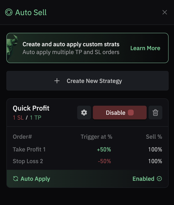 On @bullx_io I can set up a strategy that will automatically execute after my entries happen on each chart
