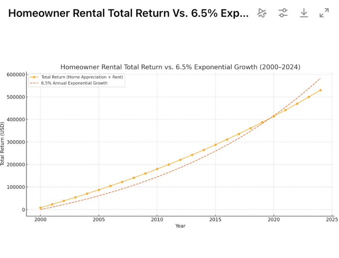 Houses grow less. Even after rents, and without factoring in property tax and maintenence, the growth is more like 6.5% 4/N