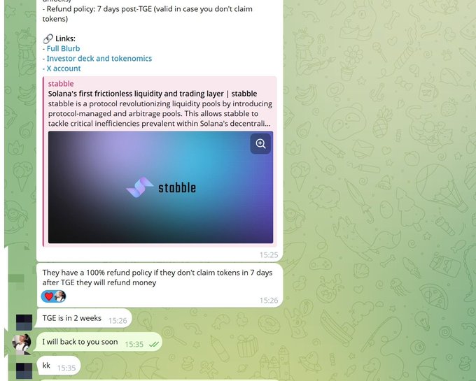 In short, the @stabbleorg team promised a KOL round refund policy but has failed to honor it since the listing, refusing to process it to this day. $STB price continues to drop.