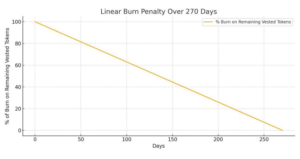 Users holding unvested Non-Fungible Tokens can choose to claim the remaining allocation at any time, but this will trigger a burn penalty based on the remaining amount.