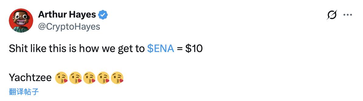 Prior to this, Arthur Hayes had boldly predicted that ENA's price could break $10.