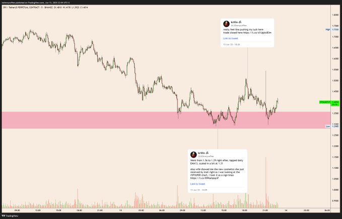 Went from 1.36 to 1.29 right after, tapped daily EMA13, scaled in a bit at 1.31
