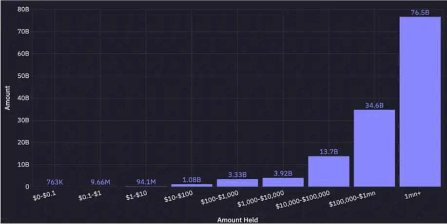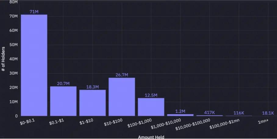 P2P Remittance Startup Treasury Individual dollar savings in an inflationary economy Cross-border B2B payments E-commerce and merchant settlement In-game economyAs regulatory clarity improves and payments-centric infrastructure continues to attract capital, these emerging use cases are expected to expand rapidly—particularly in regions underserved by traditional banks .We’ll explore this in detail in part 2 of this series. For now, let’s look at some general trends:Number of holders by holdings
