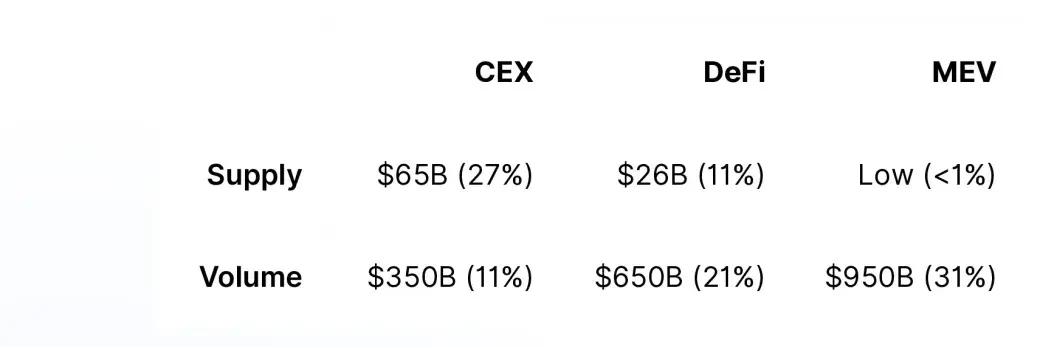- Data Insights : The report provides detailed data analysis, showing that stablecoin supply and trading volume are mainly concentrated in centralized exchanges (CEX), DeFi protocols, and maximum extracted value (MEV) infrastructure. Unattributed wallets also account for a considerable share, representing the growth potential of grassroots users and emerging use cases.