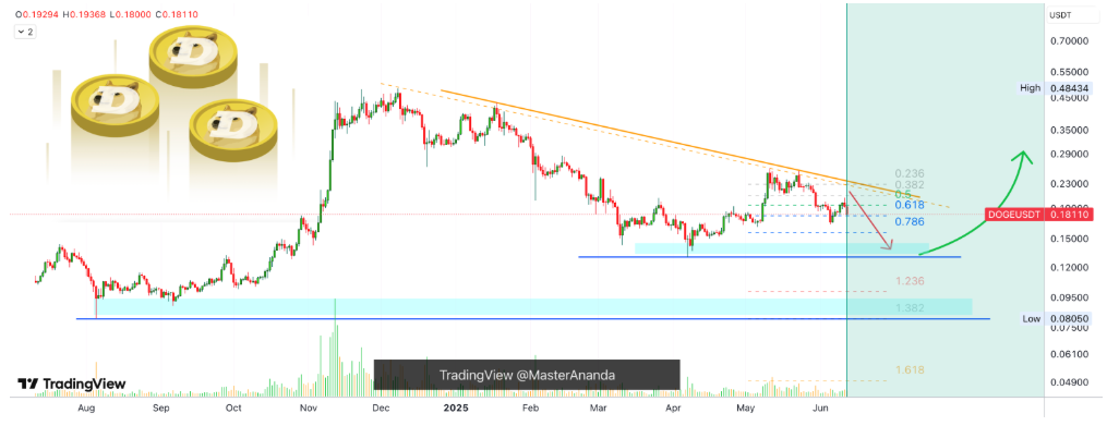 Currently, Doge's price has broken below the $0.18 support level, and the analyst simply noted this as a continuation of the downtrend that began after the market recovery on May 11th. While this is bearish in the short term and suggests potential further pullback, the analyst expects this situation won't last long.