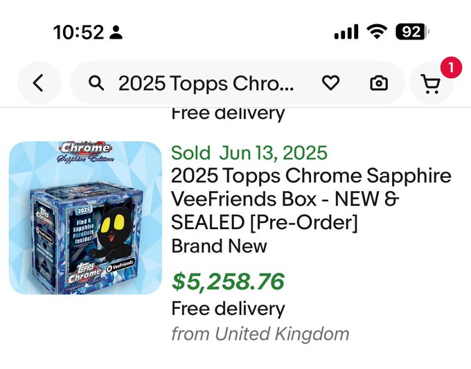 Sapphire box sale yesterday for $5258!! I have one box 📦 @veefriends @jeremyknowsVF for those who don’t know every gift goat holder got 1 box to claim! If anyone is interested in a box dm me