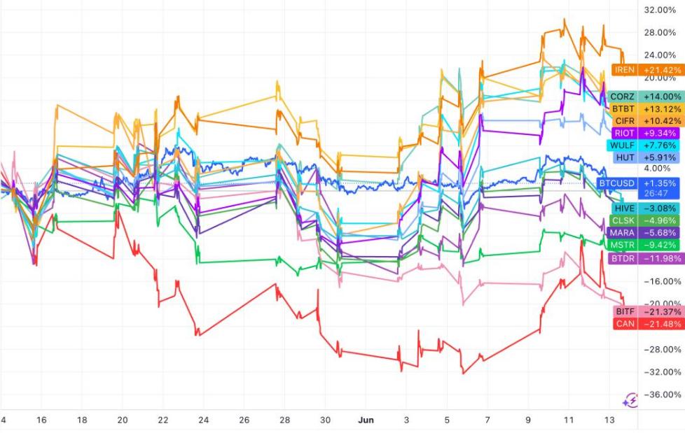 The differentiation in the Bitcoin mining industry is also becoming evident in the stock market. Investors are prioritizing companies with the ability to diversify revenue sources beyond traditional Bitcoin mining. While Bitcoin's price has only increased slightly, IREN's stock has surged 21.4%, along with many other companies achieving double-digit gains.