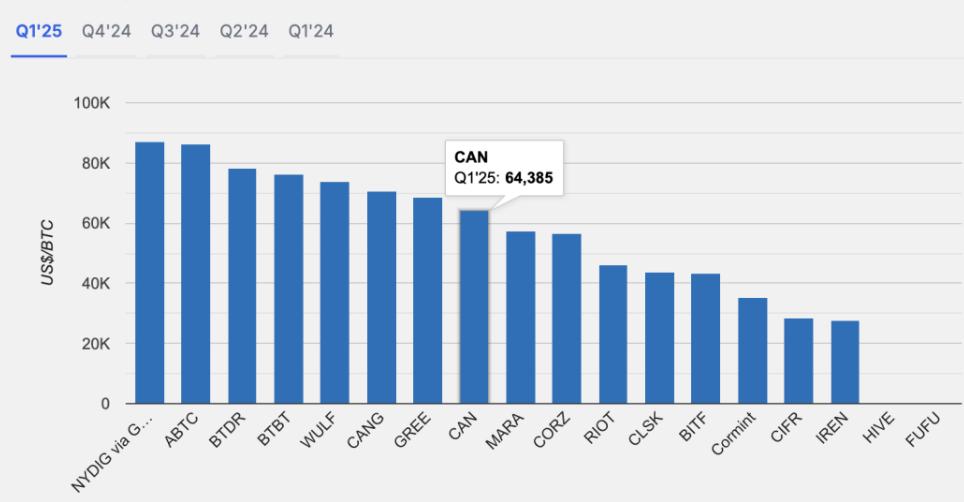 In the context of shrinking profit margins, listed mining companies are focusing strongly on optimizing performance and reducing costs per unit of computing power (fleet hashcost). In the first quarter of 2025, this cost reached a median of around 34 USD per petahash/second (PH/s).