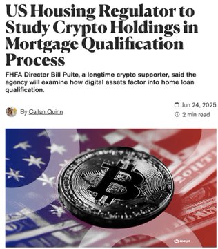 -The U.S. Federal Housing Finance Agency is exploring whether crypto assets could play a role in determining mortgage eligibility, according to its director Bill Pulte on Monday