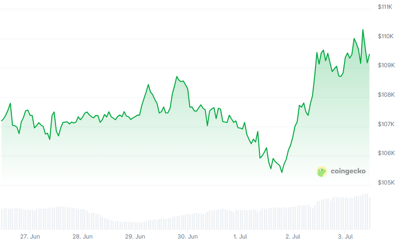 Bitcoin (BTC) is up 2% on the day and is currently changing hands at $110,000. Ethereum (ETH) surged nearly 7% to $2,620. Meanwhile, Solana (SOL) jumped 3% $153, and XRP rose nearly 5% to $2.29.