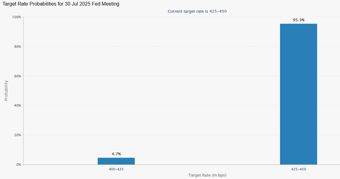 The surprising data even led traders to increase expectations of a Federal Reserve rate cut in July, with the probability rising to 25.3%, according to Bitunix analysts. Those odds have since plummeted to less than 5% after the NFP release, according to CME Fedwatch.