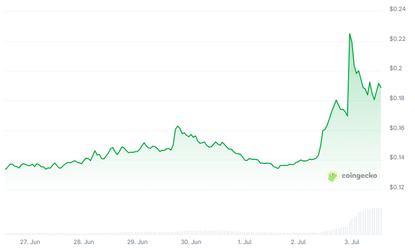 Upbit announced that it would list the MOODENG token on July 3, paired with the Korean Won (KRW) as well as BTC and USDT. Listings on the centralized exchange often trigger significant volatility.