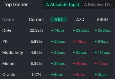 DeFi is the fastest growing narrative by mindshare accross all timeframes.