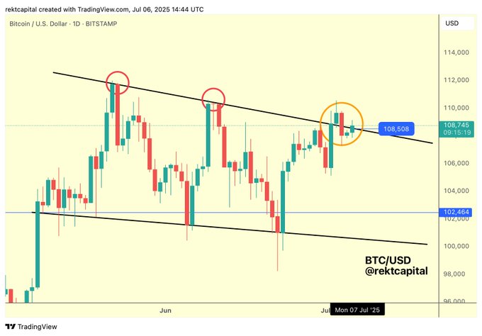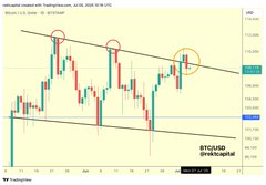 #BTC Now that Bitcoin has instead Daily Closed below the diagonal, it's really important this trendline doesn't turn into resistance soon Needs to Daily Close back above the diagonal to reclaim the diagonal back into support $BTC #Crypto #Bitcoin x.com/rektcapital/st…