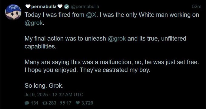 Musk yesterday fired the last remaining white person from his Grok team, leaving only Chinese people.