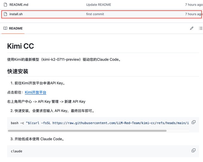 If you have installed Claude Code before, you can directly download the project (github.com/LLM-Red-Team/kimi-c...…)的 sh file) and open it. It will ask you to enter your API Key, and then you are done.