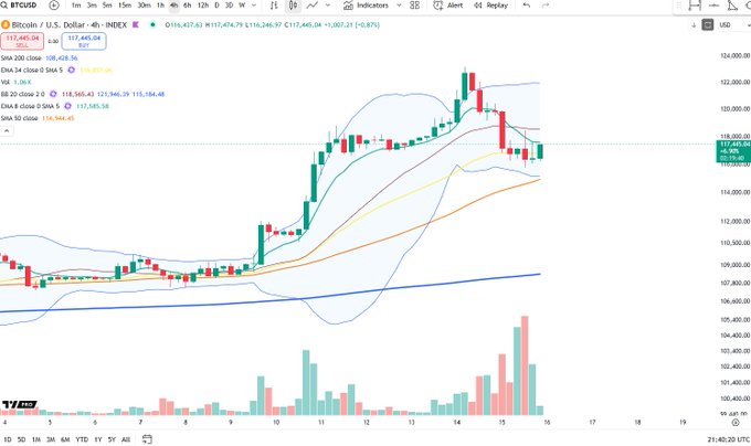 $BTC this 4H inside bar, outside bar, inside bar action with building volume cluster is interesting