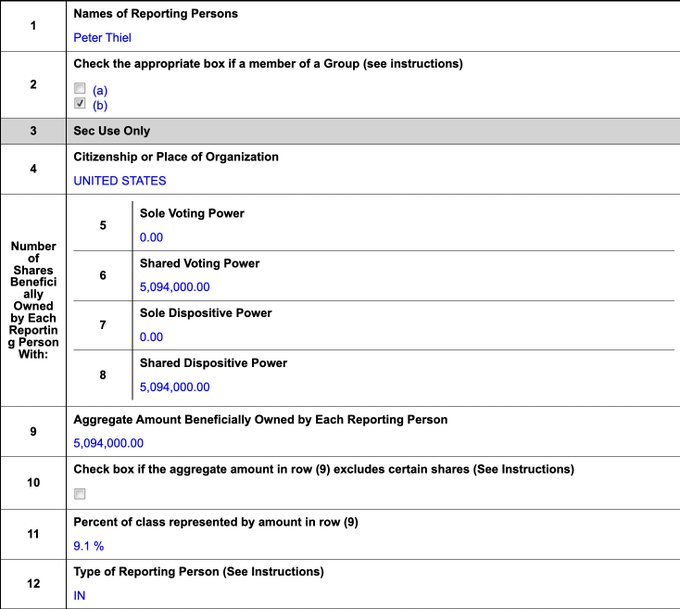 Peter Thiel just discloed a 9.1% stake in Tom Lee's new $BMNR Ethereum Trust Company according to this new SEC filings