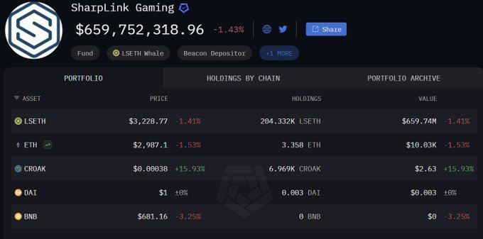 The Ethereum Foundation, which previously held the largest position on the chain, was dethroned by @SharpLinkGaming!