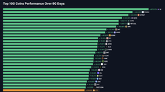 Only 28 Altcoins succeeded in overtaking $BTC in returns over the last 90 days.