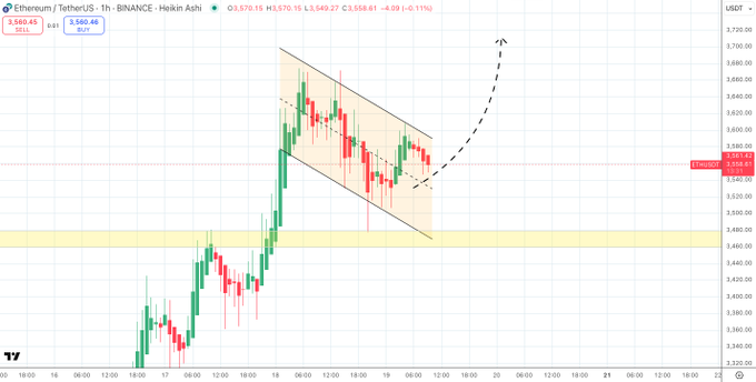 $ETH/usdt 1 hour $ETH price action on shorter time frames filling out a lovely bull flag innit 🔥🔥