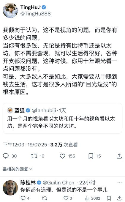 From the perspectives of assets, funds, and time dimensions, the following screenshot perfectly captures the views of three teachers. This is very similar to the view of @Guilin_Chen_ Guilin, and both @lanhubiji Blue Fox Teacher and @TingHu888 T-Daxue are speaking very reasonably, actually looking from different angles: the former from an asset perspective, the latter from a fund perspective.